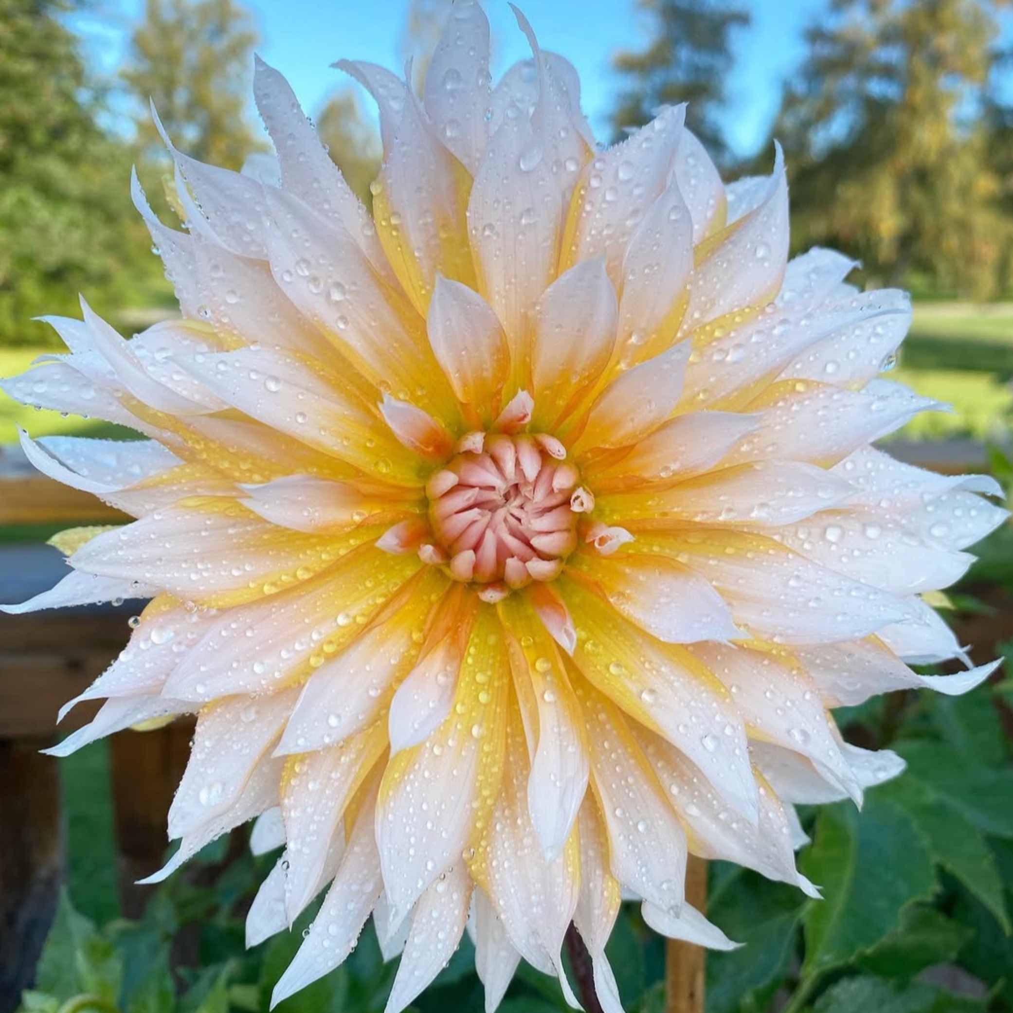Az ‘Orange & Snow’ dália feltűnő kontrasztot hoz élénk narancs és tiszta fehér szirmaival. A kétszínű, dekoratív virágok szinte világítanak a kertben, különösen napfényben. Középmagas, erőteljes növekedésű fajta, amely vibráló, friss energiát ad a nyári és őszi ágyásoknak.