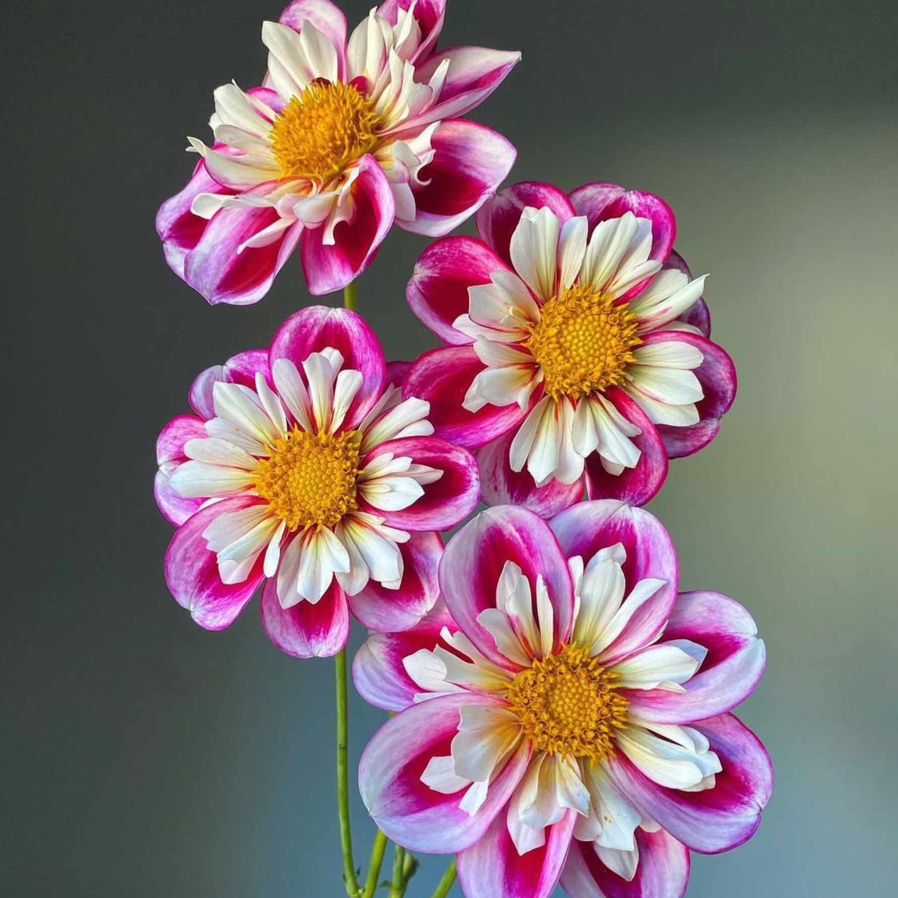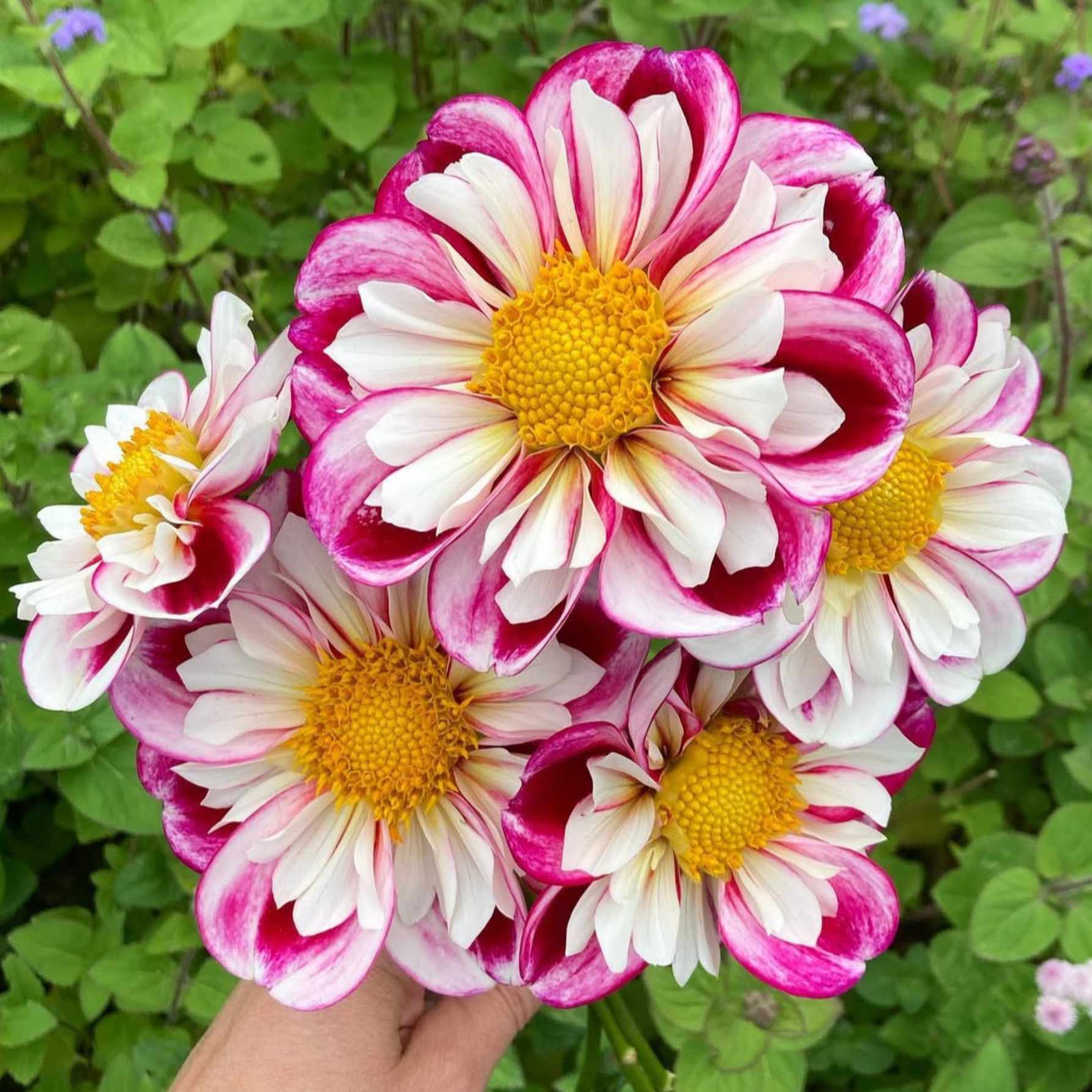 A ‘Bumble Rumble’ dália igazi beporzó-mágnes: nyitott, aranysárga, nektárral teli közepeivel szinte vonzza a méheket és a pillangókat. Vidám, élénk színjátéka – málnacsíkos fehér külső szirmok és fodros, rózsaszínes belső kör – azonnal feldobja a kertet és a teraszt. Erős, bokros növekedésű, a virágokat magas, egyenes szárakon tartja, így messziről is feltűnő. Bőségesen virágzik nyár közepétől ősz végéig, és csodás vágott virágként is, könnyen párosítható élénk rózsaszínekkel, lágy pasztellekkel vagy más beporzóbarát, késői virágzókkal.